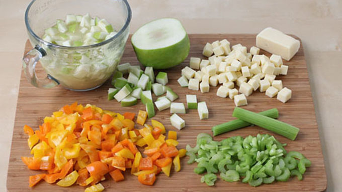 - 6 oz Havarti cheese, cut into 1/4 inch cubes