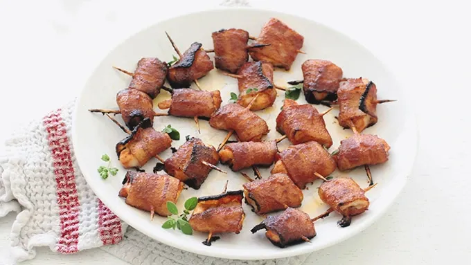 Tender bites of spicy chicken wrapped in bacon. The ultimate appetizer for parties and game day.