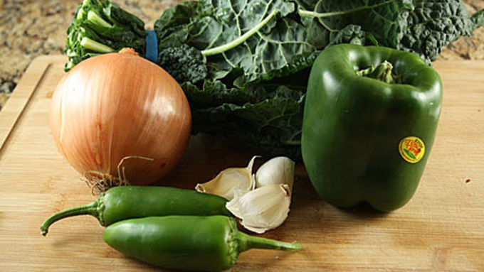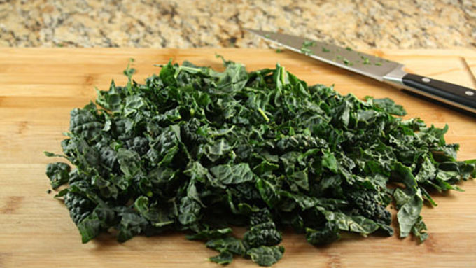 Step8Shred your kale or collard greens and add that to the pot. Cook for another 10 minutes (kale) or 20 minutes (collard greens)
