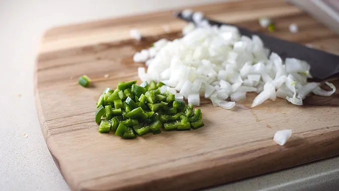 Step2While the skillet is heating, cut the jalapeno in half lengthwise. To keep things tame, remove the membranes and seeds, using a spoon to scrape them out. If you’d like the dip to be extra spicy, leave the seeds and membranes intact.
