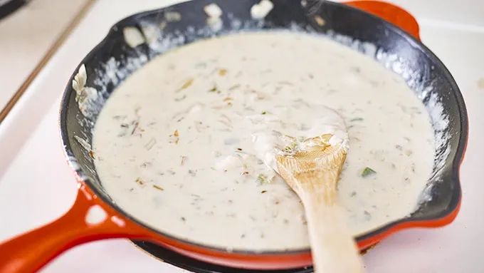 Step6Stir in the pepper jack cheese and continue stirring over low heat until it’s mostly melted.