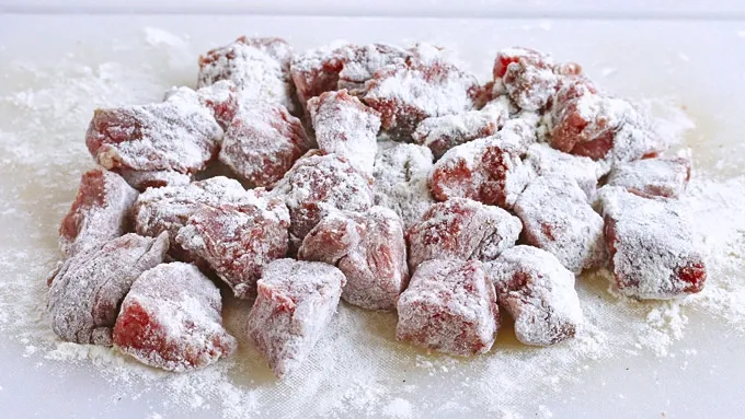 Step3Sprinkle with the flour and toss to coat the beef.