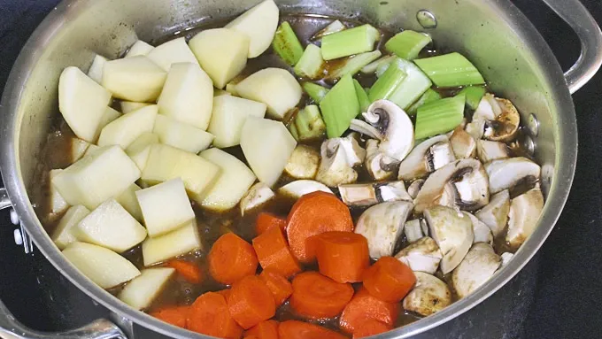Step9Add the vegetables, return to a boil, cover and simmer over low heat for another hour. Add salt and pepper to taste.