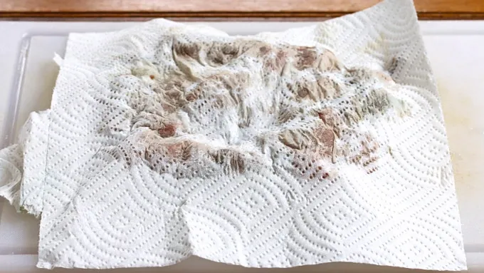 Step2Pat the beef cubes dry with paper towels and sprinkle with salt and pepper.