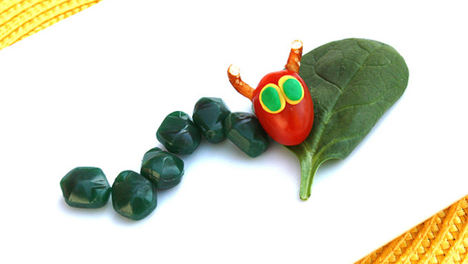 - Snack time for kids can be delish and fun when you make these famous munchy caterpillars out of kids' fave fruit snacks! We love all the cool recipes that members submit on Tablespoon! I’m always on the prowl for fun after school snacks and saw this cute Very Hungry Caterpillar from AlexisH, based on the famous children's story by Eric Carle. All my children love that book so we decided to try and make our own Hungry Caterpillar Snacks version to look just like the character. I was stumped until Fruit Gushers snacks and cherry tomatoes came to the rescue! These are so simple to make and only take a few ingredients. The kids loved making their own and it gave us a great chance to chat about their day at school. If you don’t have fondant but want to make the snack extra special, serve some plates of sliced fruit and cheese with a straw for each child….can you tell where we’re going with this?... Let each child use his/her straw to poke out “nibble” holes in the food…just like in the book! The kids loved this; there were plenty of giggles and nibbles going on! We are all about ideas that are easy to put together but make for some special quality time!