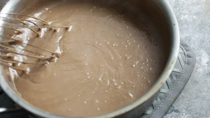 Step4Transfer chocolate mixture back to medium pot and place over low heat. Cook, stirring constantly, for 3-4 minutes until mixture thickens and coats the back of a spoon.