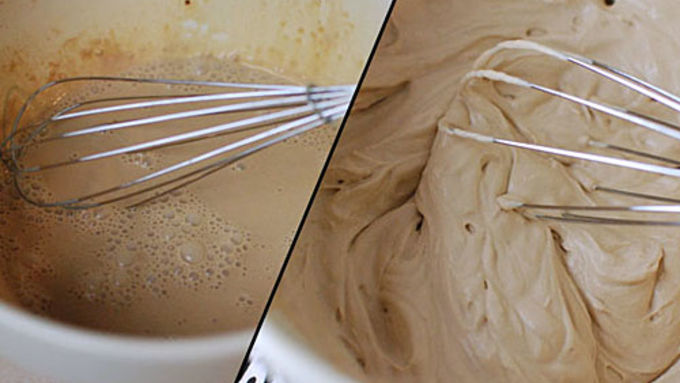 Step7Microwave the cream until warm. Add instant coffee and sugar. Chill until cold. Whisk to form whipped cream.