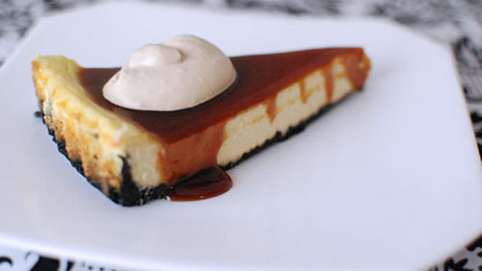 - Around this time of the year, a lot of people like to make “Irish Car Bomb” Cupcakes, with whiskey, Irish stout, and Irish cream. Of course, this is reminiscent of the Irish Car Bomb shot where you drop the booze into the beer and chug it. I have a couple problems with these cupcakes. First of all, did you know that the term Irish Car Bomb is offensive? It refers to the bombs often planted in cars by the IRA. Not the greatest name for a drink, really. Secondly, the beer is clearly the third wheel in this operation. Whiskey and Irish cream are two of my favorite things to drink, but the type of beer used here is not (I do like it on occasion, but it’s not my first choice) Plus, when the cream hits the acidic beer, it curdles! I decided to ditch the beer and the cutesy cupcakes and make a cheesecake with Irish whiskey and Irish cream liquor. It came out dense and super creamy, with just enough booze flavor to make it pleasant and not overpowering. Save room after your corned beef and cabbage this year! To make this cheesecake a bit different, I decided to cook it in a tart pan instead of a Springform. It would work in either pan, but the wide and shallow tart pan made for a good ratio of caramel to cheesecake in each bite. While making the caramel make sure to use a big enough pot because the cream bubbles up high when you add it to the pan and the sugar is VERY hot. Nice Irish cream and whiskey flavors, but not overpowering. I never get seconds of dessert, but I had to have a few extra bites of this one.