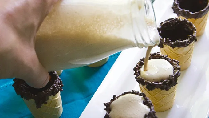 Smooth and boozy ice cream shots are poured into mini ice cream cones, making these fun little party sippers a crowd-pleasing surprise!