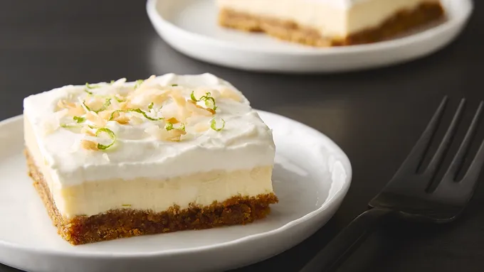 A delicious tart and sweet summer pie made with a buttery, coconuty, graham crackery crust.