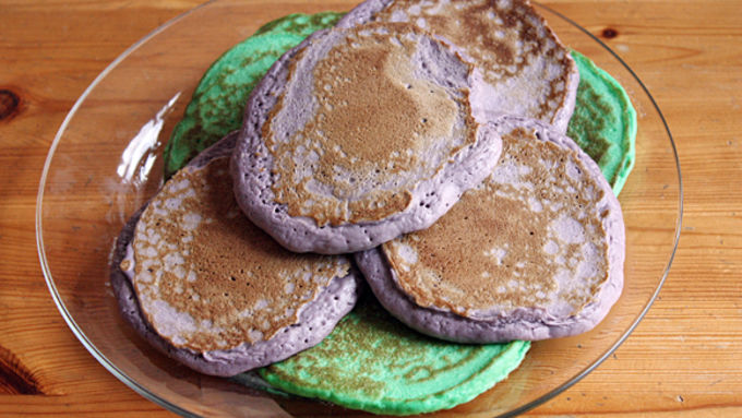 Kick off Mardi Gras with a plate of these festive pancakes.