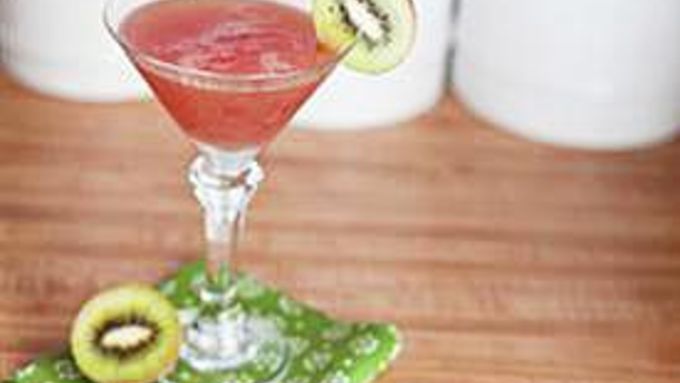 Step2Pour kiwi-strawberry vodka over ice in a cocktail shaker. Shake for 1-2 minutes. Pour into two large martini glasses.