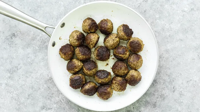 Step2In a large skillet, heat 1 tablespoon of vegetable oil over medium heat. Cook meatballs for 5 to 7 minutes, stirring occasionally, until browned on all sides. Remove from skillet and set aside.