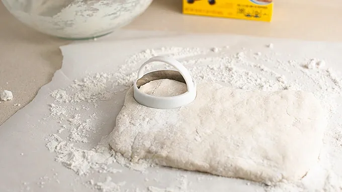 Step3Pat into a uniform shape about 1/2-inch thick. Cut into biscuits with a biscuit cutter or the rim of a glass. Bake on an ungreased baking sheet for 8-10 minutes or until golden brown. Set aside.
