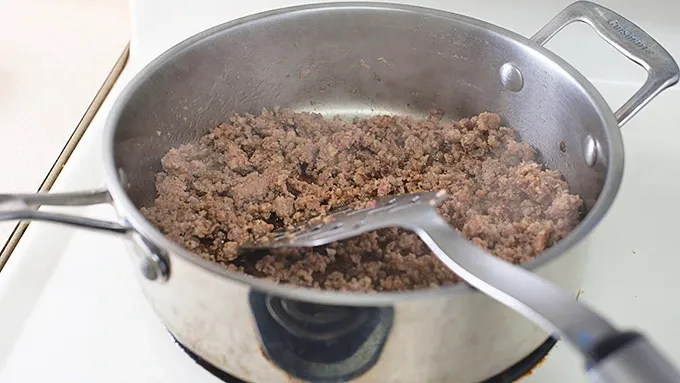 Step4While the biscuits are baking, add the sausage and butter to a large skillet over medium heat. Use a spatula to break up the sausage into small pieces. Cook, stirring often, until no longer pink.