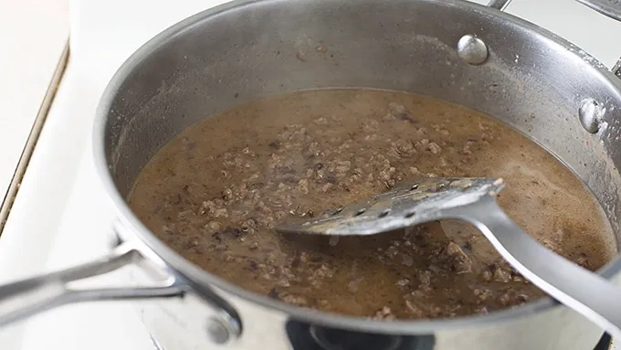 Step7Add the remaining champagne and continue stirring and cooking until thickened. Add up to 1/2 cup more champagne to thin the gravy, if you prefer.