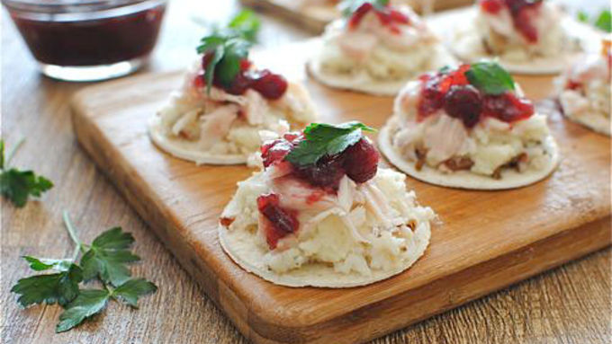 Step2Follow with a layer of mashed potatoes, turkey, cranberry sauce, and fresh parsley.