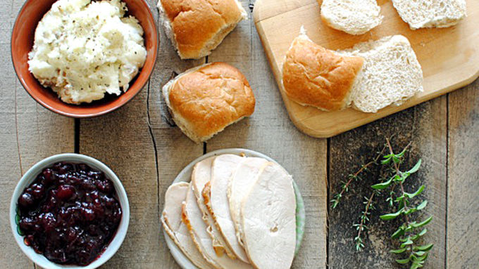 - I think it's pretty obvious that these leftover turkey tater sliders are only the most awesome things ever. Oh hi, delicious leftover garlic mashed potatoes. Nice to see you. And hello, chopped juice turkey. You're lookin' fine. And bonjour, pungent earthy herbs. I like you. Oh what's that, you're all being mashed together and rolled into little balls of Thanksgiving happiness? I can dig. And then being lightly crisped in a sauté pan until you're golden brown with comfort and joy for my mouth? Why, thank you. And then being slid into a sliced warm dinner roll and topped with a bright cranberry sauce drizzle? Let's run away together. No, I'm serious. Get your kids to make these. Tiiiiiiime of their lives. (That way you can concentrate on that Bloody Mary*, I mean, am I right?)