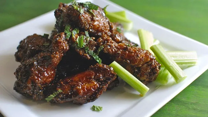 Crispy chicken wings with a tangy citrus glaze.
