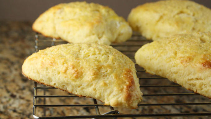 - Scones always baffle me because they are, in reality, just a strangely shaped biscuit. But coffee shops and restaurants around the country charge exorbitant prices for the little guys…and half the time they aren't even that good! The truth is that scones are some of the easiest breakfast treats to make from scratch. You probably have most the ingredients in your kitchen, they take only 30-45 minutes to make, and once you get the hang of it you can customize them like crazy. For this version, I lightened up the scone by using honey instead of sugar and adding some fresh lemon juice and zest to the batter. The end pastry is light, fluffy, buttery, and pretty darn hard to beat in my opinion. It's a good idea to brush them with some egg wash which will make them nice and golden brown and also give the crust some crunch. Optionally, you can also sprinkle some raw sugar on top of each scone. This just gives them a tiny bit of extra sweetness and crunch. I love it, but they would be fine without the raw sugar too. These are great by themselves, but you can serve them with butter, jam, or something really rich like Nutella. The point is that you can make these – they're delicious and fairly easy. There's really no reason to be over-charged for a large biscuit!