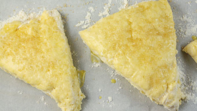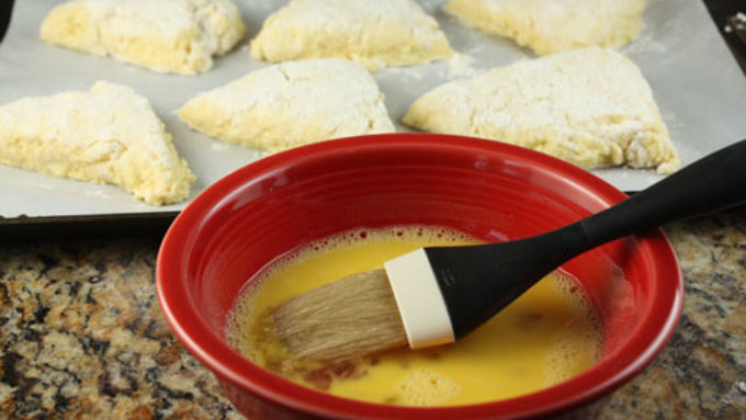 Step7Mix the egg for the egg wash with 1 tablespoon of water and brush all the scones with the egg/water mix.![]()