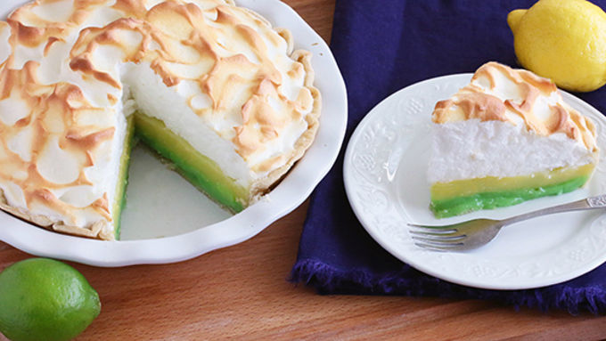 - Citrus fans will love this super lemon-lime power duo of a pie with TWO separate flavor layers! The human race is in love with lemons. It’s true. There’s something in the flavor of lemon that is both invigorating and comforting at the same time. And what a great combination that is. Lemon-flavored foods date back through the centuries. There have been lemon-flavored custards, puddings and pies since medieval times. And the lemon meringue pie was introduced and perfected in the 1800’s by a Swiss baker by the name of Alexander Frehse. Yes, the beloved lemon meringue pie. Did you know there’s a personality type associated with lemon meringue pie? Yup, there is. From a list of different desserts, if you choose lemon meringue pie that means you are: Smooth, sexy, and articulate with your hands. You’re also an excellent after-dinner speaker and a good teacher. Apparently though, you tend to be a little uncoordinated. Like don’t try knitting while dancing the salsa. That kind of thing. And the lemon meringue pie personality type also means you’re prone to being a bit of a diva at times. But hey, having been born with such superior taste what can anyone expect, right?