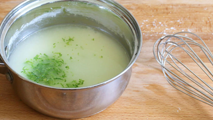 Step3Combine the sugar, cornstarch, flour and a pinch of salt in a small saucepan. Add the lime juice, zest, and water. Whisk to combine and continue whisking over medium-high heat until the mixture starts bubbling.