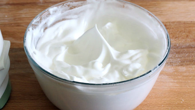 Step6To make the meringue: Use an electric mixer to beat the egg whites until foamy, then add the cream of tartar. Continue beating until no more liquid whites remain, then slowly add in the sugar/cornstarch mixture one tablespoon at a time. Continue beating, starting on low speed and gradually increasing to high, until stiff peaks form (when you lift the beaters the peak that forms will stand straight up and not curve over at the tip.) Be careful not to over-beat it though, or the meringue topping will crack.