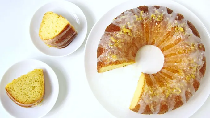 Drizzle cake with glaze. Sprinkle with additional grated lemon peel.