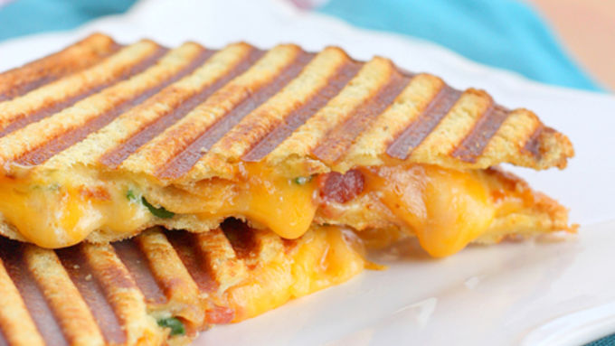 All of your favorite baked potato toppings melted together into a gooey, cheesy panini.