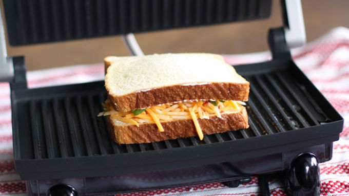 Step3Top with the other piece of bread and place in the panini maker. Close the top and cook for 2-3 minutes or until golden brown. Slice in half and enjoy!