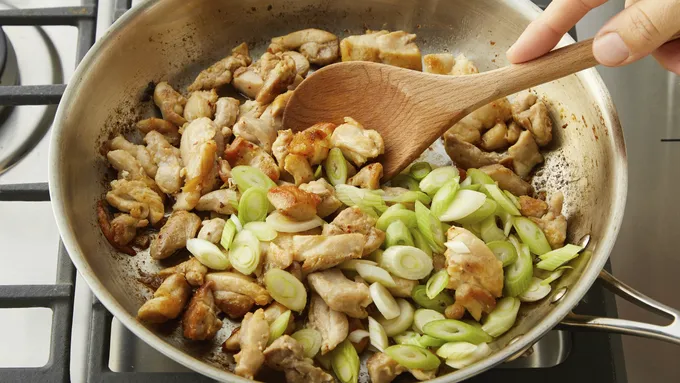 Add remaining 2 tablespoons butter to skillet; melt over medium-high heat. Add chicken; cook 4 minutes without moving. Stir chicken; stir in green onion whites, soy sauce and remaining 1 tablespoon gochujang paste. Cook 4 to 6 minutes, stirring occasionally, until chicken is cooked through (at least 165°F in center); drain and discard cooking liquid.