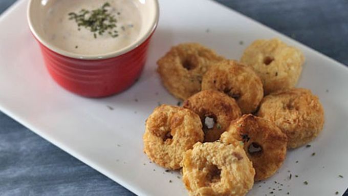 - I recently caught these fried potato rings online and immediately craved them. Like everything we do here on Tablespoon though, I had to crank it up to a whole new level! I find that the best way to turn things up is add bacon. Taking inspiration from a loaded baked potato, I mixed bacon and cheese right into these rings. Served with a yogurt ranch dip, these Loaded Potato Rings would be a hit at any party! The secret to make them easy and awesome? Use potato buds to make a nice thick and sturdy potato mixture. Mix with bacon and cheese, fry 'em up, and devour. They kind of looked like mini donuts and they taste like awesome! Creamy potato, crisp on the outside, and a bacon-y surprise!