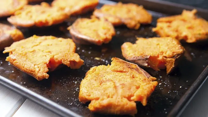 - For game day or the big feast, this is sweet potatoes like none other! My favorite category of appetizers involves dishes that are their own plates. Anything you can carry around without too much fuss – but is also delicious – is high on my list of foods to make not just for the holidays, but for any gathering. These little smashed sweet potatoes are a fun holiday twist on a classic loaded baked potato. By smashing them, you can maximize their crispy edges and also make a "plate" for all the toppings you can handle! Party tip: You could bake a bunch of these and then have a little bar where people could top their own potatoes. These are fun and look elegant enough to serve to a holiday crowd, as well as game day fans. Some would say they are a smashing success.