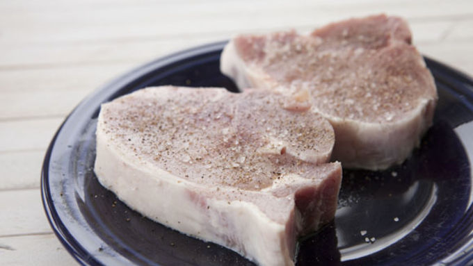 Step4Season pork chops with kosher salt and black pepper well on both sides.