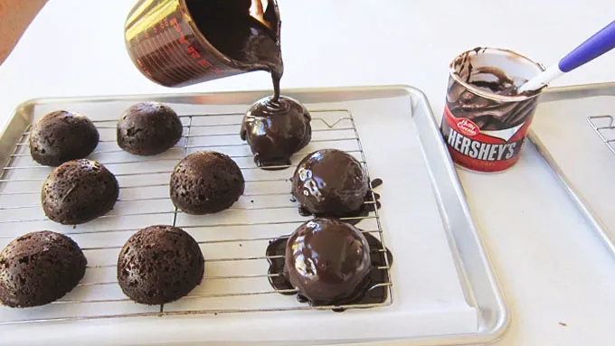 Step11Heat chocolate frosting and microwave for 45 to 90 seconds, until pourable.