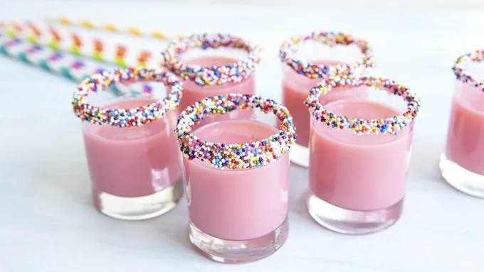 Step3Pour drinks into shot glasses. Garnish with teeny paper straws, if desired. Serve immediately and enjoy!