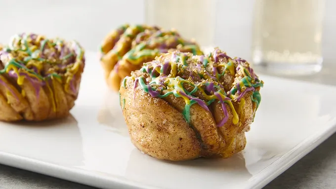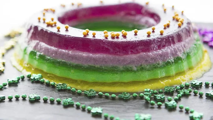A traditional Mardi Gras cake made with yeast, cinnamon, and a yummy (and colorful!) lemon glaze. Try not to get the baby!