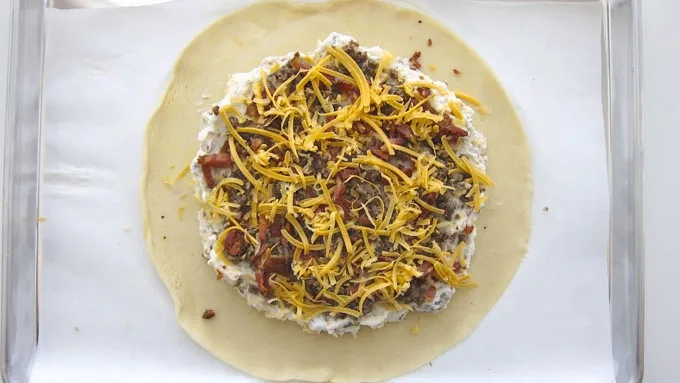 var configuration = {"title":"Meat and Potatoes Crostata","introduction":"This savory rustic tart is filled with mashed potatoes, sausage, bacon and cheese.","servingSize":"1 Serving","image":{"small":{"media":"(min-width: 0px)","src":"https://mojo.generalmills.com/api/public/content/KYMznu8Q40iKEJ-IrGFpMg_webp_base.webp?v=a78971d9\u0026t=e724eca7b3c24a8aaa6e089ed9e611fd"},"medium":{"media":"(min-width: 500px)","src":"https://rms-media-prod.generalmills.com/563f3b30-7111-4604-a0ec-f6a2d87ef321.jpg"},"large":{"media":"(min-width: 767px)","src":"https://rms-media-prod.generalmills.com/563f3b30-7111-4604-a0ec-f6a2d87ef321.jpg"},"alt":"Meat and Potatoes Crostata"},"contributor":{"label":"by:","name":"Hungry Happenings","profileUrl":"/contributors/hungry-happenings","displayDate":{"label":"Updated","date":"Apr 23, 2021"}},"ingredientGroups":[{"ingredients":[{"quantity":"1","description":"crust from 1 box (14.1 oz) refrigerated Pillsbury™ Pie Crusts (2 Count), softened as directed on box"},{"quantity":"1","description":"egg"},{"quantity":"1","description":"teaspoon water"},{"quantity":"2 1/2","description":"cups prepared mashed potatoes"},{"quantity":"1","description":"cup cooked and crumbled pork sausage"},{"quantity":"6","description":"slices bacon, chopped"},{"quantity":"2","description":"oz shredded sharp cheddar cheese"}]}],"steps":[{"description":"Preheat oven to 400°F. Line a baking pan with parchment paper and unroll pie crust onto the pan.","stepShotImageUrl":"//mojo.generalmills.com/api/public/content/amYhbKQDQEGjgPOzBHSNMA_webp_base.webp?v=fecdc542\u0026t=3653fe2f5ecd4a47a5a51c97e429947c"},{"description":"Whisk together the egg and water to create an egg wash and brush a thin layer over the pie crust. (This will help the dough hold together when you fold it over the filling.)","stepShotImageUrl":"//mojo.generalmills.com/api/public/content/XLnXITfIQEKOujkRAV5eJA_webp_base.webp?v=0f8969d0\u0026t=3653fe2f5ecd4a47a5a51c97e429947c"},{"description":"Stir together the mashed potatoes, 1/2 cup of the crumbled sausage, half of the chopped bacon and half of the cheese. Spoon about 1 cup of this mixture into the center of the pie dough.","stepShotImageUrl":"//mojo.generalmills.com/api/public/content/9eugZeU3kEK04nWvriJyIw_webp_base.webp?v=7d64a1c5\u0026t=3653fe2f5ecd4a47a5a51c97e429947c"},{"description":"Add remaining potato mixture and spread toward the center of the pie crust, leaving a 3-inch border of uncovered crust around the edge.","stepShotImageUrl":"//mojo.generalmills.com/api/public/content/T8pBFN61jkCuHDXYyA6Fmw_webp_base.webp?v=b37121cd\u0026t=3653fe2f5ecd4a47a5a51c97e429947c"},{"description":"Sprinkle the remaining sausage and bacon over top of the potatoes. Toss on half of the remaining cheese. ","stepShotImageUrl":"//mojo.generalmills.com/api/public/content/lm1VeOEXWU-IxtbtPueKmQ_webp_base.webp?v=17b65c65\u0026t=3653fe2f5ecd4a47a5a51c97e429947c"},{"description":"Fold the dough up over the outer edge of the potatoes, pinching the dough together as needed about every two inches, and brushing it with egg wash as you go.","stepShotImageUrl":"//mojo.generalmills.com/api/public/content/zwNdk6KVJ0qD61p22dTXkA_webp_base.webp?v=e0d47af5\u0026t=3653fe2f5ecd4a47a5a51c97e429947c"},{"description":"When you are finished pleating the dough you should have a rustic-looking tart about 7-8 inches in diameter. ","stepShotImageUrl":"//mojo.generalmills.com/api/public/content/46x8Bb1PXUqpJxbGD8B-XA_webp_base.webp?v=82e6a5f6\u0026t=3653fe2f5ecd4a47a5a51c97e429947c"},{"description":"Bake for 22-26 minutes until crust is golden brown. Remove from oven, top with remaining cheese, and return to oven just for a moment until the cheese melts. Cut into slices and serve hot."}],"tips":[{"title":"","description":"Try topping each slice with a dollop of sour cream.","category":"Serving Suggestions/Menu","tipShots":[]},{"title":"","description":"You can swap out some of the meat for veggies. For instance, you can make a broccoli and cheese potato crostata topped with bacon. ","category":"Substitution","tipShots":[]},{"title":"","description":"One of my favorite indulgences is sinking my teeth into a slice (or three) of thick-crust mashed potato pizza topped with lots of cheese and bacon. (It might sound a little out-there, but I promise it’s delicious. Definitely give it a try!) But it’s a rare treat, as the closest pizza place serving this dish is quite a distance from our house.\u003cbr /\u003e\u003cbr /\u003eOne night I was really craving this particular pizza and thought I’d try making it at home. I didn’t have any pizza crusts on hand and didn’t feel like making dough from scratch, so I grabbed a box of refrigerated Pillsbury™ Pie Crusts and used one of those instead. After all, it’s perfect for chicken pot pie, so I figured it would taste just as good with other savory ingredients. I filled the dough with mashed potatoes, bacon and cheese and folded it over into a crostata so that I could still cut slices and eat it like a pizza. \u003cbr /\u003e\u003cbr /\u003eOnce baked, the flaky crust was light and delicate, which was a perfect balance for the substantial filling. I actually preferred it to the pizza crust! \u003cbr /\u003e\u003cbr /\u003eOver the years I’ve changed up the fillings, adding things I might have left over in the fridge, like crumbled sausage. I’ve even made versions of this crostata with broccoli, cheese and bacon, and a post-Thanksgiving one with turkey and gravy. So get creative and make a crostata with your favorite flavor combinations! It’s a great dinner idea to have on hand for those nights when you’re not sure what to make.","category":"Editorial","tipShots":[]}],"kitchenTips":[{"title":"","description":"Try topping each slice with a dollop of sour cream.","category":"Serving Suggestions/Menu","tipShots":[]},{"title":"","description":"You can swap out some of the meat for veggies. For instance, you can make a broccoli and cheese potato crostata topped with