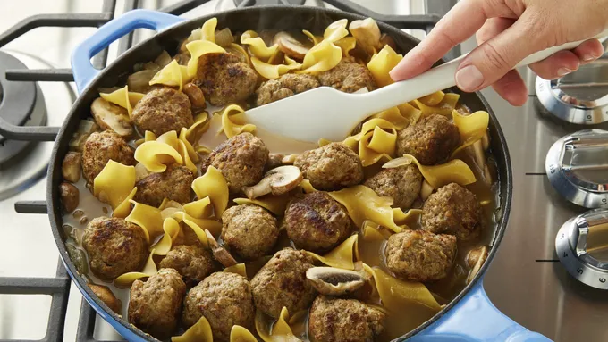 var configuration = {"title":"Meatball Stroganoff Pasta Skillet","introduction":"This one-skillet dinner is a total weeknight savior. It\u0027s full of flavor from the sautéed mushrooms and onions, and using tender meatballs instead of expensive beef cuts ensures you won\u0027t break the bank. Talk about a win-win!","servingSize":"1 Serving","image":{"small":{"media":"(min-width: 0px)","src":"https://mojo.generalmills.com/api/public/content/aOk2kMT3KEei1namru1_tA_webp_base.webp?v=bcf91c0f\u0026t=e724eca7b3c24a8aaa6e089ed9e611fd"},"medium":{"media":"(min-width: 500px)","src":"https://mojo.generalmills.com/api/public/content/aOk2kMT3KEei1namru1_tA_webp_base.webp?v=bcf91c0f\u0026t=191ddcab8d1c415fa10fa00a14351227"},"large":{"media":"(min-width: 767px)","src":"https://mojo.generalmills.com/api/public/content/aOk2kMT3KEei1namru1_tA_webp_base.webp?v=bcf91c0f\u0026t=191ddcab8d1c415fa10fa00a14351227"},"alt":"Meatball Stroganoff Pasta Skillet"},"contributor":{"label":"by:","name":"Tablespoon Kitchens","profileUrl":"/about-us","displayDate":{"label":"Updated","date":"Apr 18, 2019"}},"ingredientGroups":[{"ingredients":[{"quantity":"1","description":"lb ground beef (at least 80% lean)"},{"quantity":"1/4","description":"cup Progresso™ plain panko crispy bread crumbs"},{"quantity":"1/4","description":"cup milk"},{"quantity":"1","description":"egg"},{"quantity":"1","description":"tablespoon Worcestershire sauce"},{"quantity":"2","description":"cloves garlic, finely chopped"},{"quantity":"3/4","description":"teaspoon salt"},{"quantity":"1/2","description":"teaspoon pepper"},{"quantity":"2","description":"tablespoons butter"},{"quantity":"1","description":"package (8 oz) sliced baby portabella mushrooms"},{"quantity":"1","description":"medium onion, chopped"},{"quantity":"2","description":"cloves garlic, finely chopped"},{"quantity":"3","description":"tablespoons Gold Medal™ all-purpose flour"},{"quantity":"1","description":"carton (32 oz) Progresso™ beef flavored broth"},{"quantity":"1/4","description":"teaspoon pepper"},{"quantity":"5","description":"cups uncooked extra-wide egg noodles (8 oz)"},{"quantity":"1","description":"cup sour cream"}]}],"steps":[{"description":"In large bowl, mix beef, bread crumbs, milk, egg, Worcestershire sauce, garlic, salt and pepper. Shape into 20 meatballs.","stepShotImageUrl":"//mojo.generalmills.com/api/public/content/Yql2FV4YTUyp5V1XMju_Rw_webp_base.webp?v=44f813b3\u0026t=3653fe2f5ecd4a47a5a51c97e429947c"},{"description":"In 12-inch nonstick skillet, heat butter over medium-high heat. Add meatballs; cook 7 to 10 minutes, gently turning occasionally, until browned on all sides. Remove meatballs from skillet.","stepShotImageUrl":"//mojo.generalmills.com/api/public/content/2k6i_IbKjE2WmJXvgyLYhQ_webp_base.webp?v=1b8a4dbf\u0026t=3653fe2f5ecd4a47a5a51c97e429947c"},{"description":"Cook mushrooms, onion and garlic in drippings in skillet over medium heat 5 to 7 minutes, stirring occasionally, until tender. Add flour; cook and stir 1 minute. Stir in broth and pepper; heat to boiling. Add noodles and browned meatballs to skillet. Reduce heat to medium; simmer 13 to 15 minutes, stirring occasionally, until noodles are tender and meatballs are cooked through. Remove from heat; stir in sour cream.","stepShotImageUrl":"//mojo.generalmills.com/api/public/content/2I0XM1cs9EOVsNuZHmkjbQ_webp_base.webp?v=b35a6882\u0026t=3653fe2f5ecd4a47a5a51c97e429947c"}],"tips":[{"title":"","description":"Worcestershire sauce is a salty, savory condiment often found in steak sauces.","category":"Recipe/Ingredient Facts","tipShots":[]},{"title":"","description":"Sour cream can break and appear curdled if overcooked or exposed to high heat. For that reason, the skillet is removed from heat before sour cream is added, to ensure a smooth, creamy sauce.","category":"Techniques","tipShots":[]},{"title":"","description":"Baby portabella mushrooms are sometimes labeled as cremini. They have a deeper flavor than white button mushrooms, which can be used as a substitute in this recipe.","category":"Substitution","tipShots":[]},{"title":"","description":"Chopped fresh parsley makes a lovely garnish for this dish.","category":"Presentation/Garnish","tipShots":[]},{"title":"","description":"Kitchen Tested - 1/2019","category":"Kitchen Tested","tipShots":[]}],"kitchenTips":[{"title":"","description":"Worcestershire sauce is a salty, savory condiment often found in steak sauces.","category":"Recipe/Ingredient Facts","tipShots":[]},{"title":"","description":"Sour cream can break and appear curdled if overcooked or exposed to high heat. For that reason, the skillet is removed from heat before sour cream is added, to ensure a smooth, creamy sauce.","category":"Techniques","tipShots":[]},{"title":"","description":"Baby portabella mushrooms are sometimes labeled as cremini. They have a deeper flavor than white button mushrooms, which can be used as a substitute in this recipe.","category":"Substitution","tipShots":[]},{"title":"","description":"Chopped fresh parsley makes a lovely garnish for this dish.","category":"Presentation/Garnish","tipShots":[]}],"additionalContent":[],"faq":[],"tipCategories":[{"categoryName":"Kitchen Tested","heading":"More About This Recipe","cssClass":"recipePartStory","expandOnInit":false,"expandText":"More +","collapseText":"Less -","expandEventName":"","collapseEventName":"","image":"","tips":[{"title":"","description":"Kitchen Tested - 1/2019","category":"Kitchen Tested","tipShots":[]}],"isExpandable":false}],"nutritionInfo":{"configuration":{"showAsTable":false,"noNutritionInformationAvailableMessage":"No nutrition information available for this recipe","poweredByText":"\u003cp\u003eNutrition information for this recipe is estimated using a leading nutrition calculation application, but is an estimate only. Actual nutrition values will vary based on the exact ingredients or brands you may use.\u003c/p\u003e\n\u003ca href=\u0022http://developer.edamam.com\u0022\u003ePowered By \u0