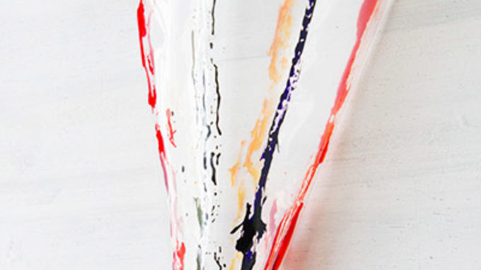 - When your meringue is ready, use Betty Crocker™ gel food colorings to draw lines up the edges of a large pastry bag. Keep the bag wide open by holding it in your hands near the center to keep it from collapsing and mixing the colors.