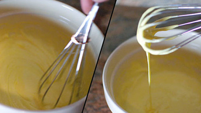 Step1Whisk sugar, salt and yolks until sugar is dissolved and mixture lightens.