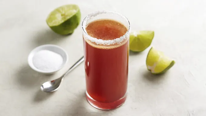 Like a richer, darker version of a bloody Mary, this Mexican michelada is sure to shake up happy hour in the best way possible. Pairs well with a big bowl of tortilla chips.