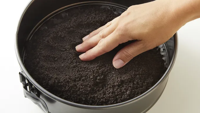 Step1Over stovetop or in the microwave, melt the butter. Let it cool, then thoroughly combine with cookie crumbs.