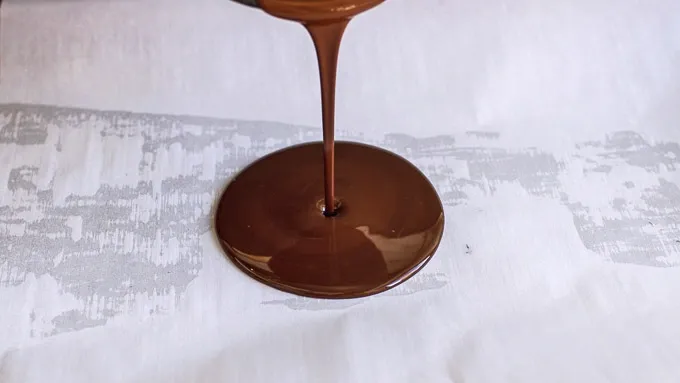 Step4Meanwhile, melt the chocolate over a double broiler until completely melted and smooth. Line a cookie sheet with parchment paper and spread the melted chocolate in a thin layer over the paper. Place the pan in the freezer to harden.