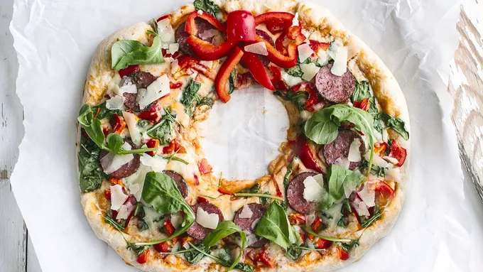 Step1Preheat oven to 400°F. Unroll pizza crusts onto piece of parchment paper. With a 3 to 4-inch heart-shaped cookie cutter, cut the crust into 16 hearts.