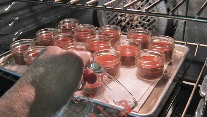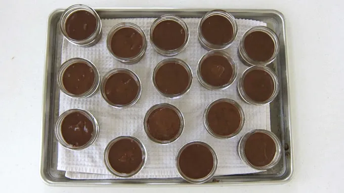 Step1Cake:Preheat oven to 350°F. Spray 16 half-pint jars with cooking spray. Line a high-rimmed baking pan with a kitchen towel and arrange the jars on top. Bring a pot of water to a boil.