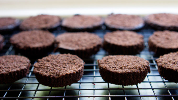 Step2Cool cupcakes completely. (Place in freezer for 15 minutes before frosting to really firm up the cake). With a VERY sharp knife, gently slice the top off each cupcake, then slice the remaining bottom portion of the cupcake into two pieces.