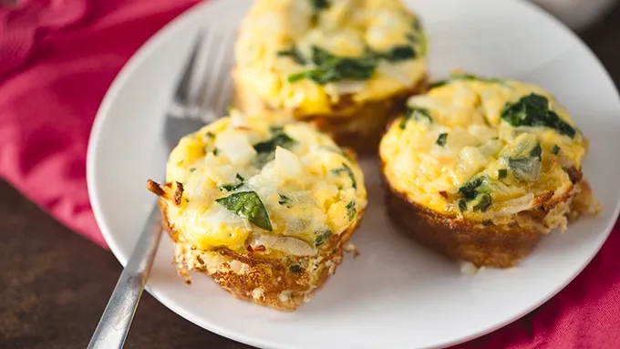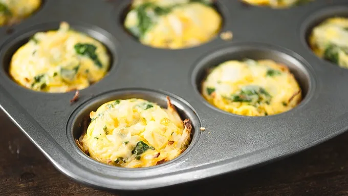 - Mini Potato Quiche Cups are a bite-sized bundle of breakfasty goodness. Bacon, eggs, and veggies are nestled in a hashbrown crust for a grab and gobble brunch treat. Is it breakfast time yet? Because I don’t know about you, but I’m currently in this weird phase of my life where I want breakfast all of the time. I used to skip breakfast or (weirdness alert) eat tacos or burgers for breakfast. I was never a breakfast food kind of person. Now? Gimme those eggs. Gimme that bacon. Gimme all your quiche cups. Yes. Quiche cups. With a hash brown crust, because Lord knows we need more hash browns in our lives. You've probably heard that you should squeeze out the excess moisture from hashbrowns. Well, here's a secret trick: mix the hash browns with an eensy bit of flour. This is my lazy pants version of squeezing the water out of hash browns...soak it up with flour instead. Please don’t tell Alton Brown about this, k? So simple, mix, bake, and devour! You'll want to make breakfast anytime, day or night!
