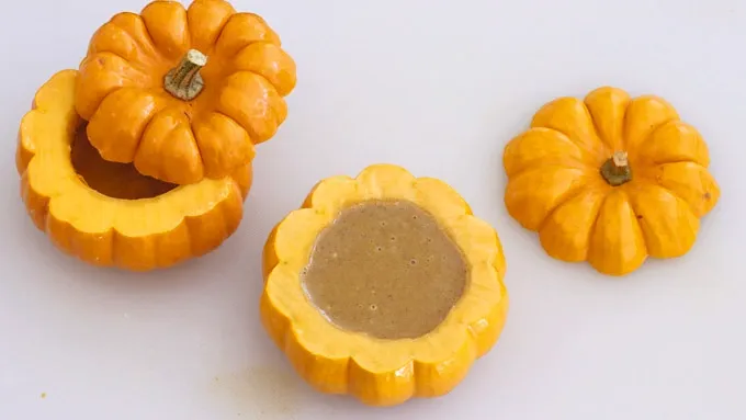 Step3Fill each pumpkin cavity with pumpkin pie filling, making sure to fill it all the way to the top.